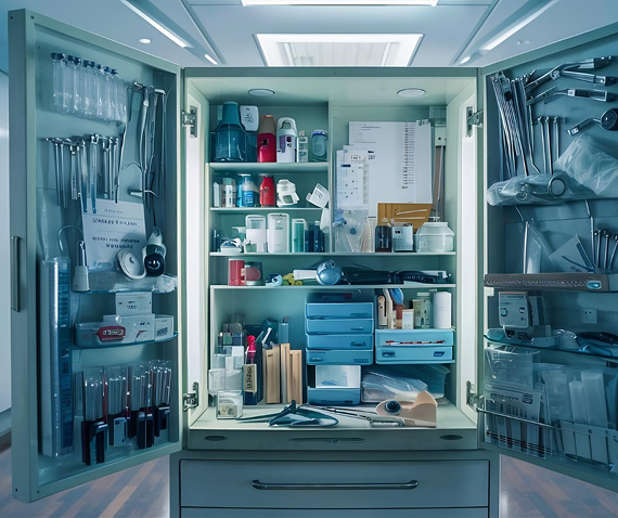 Adjustable Shelving: Interior shelves for organized storage of various medication sizes.